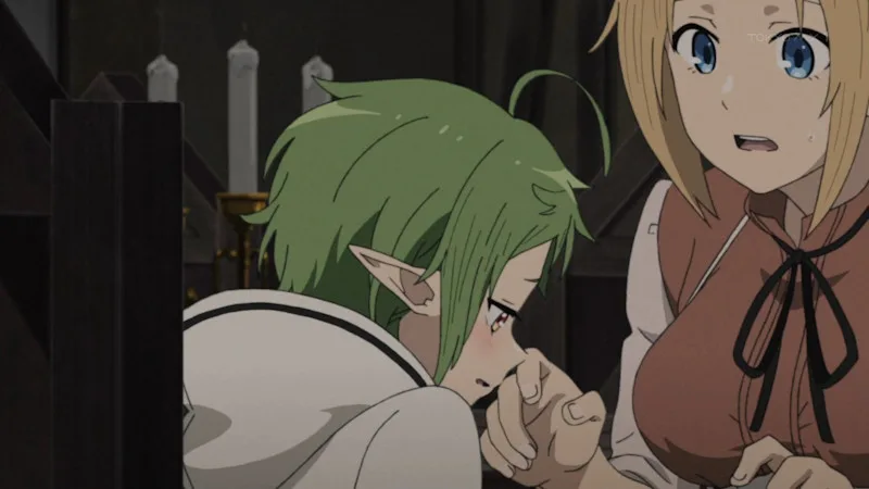 シルフィは声も震え声で実に弱々しい。原作のころから、無職転生のヒロインの中では自分にとって押しの弱い登場人物のひとりだった。アニメ版ではCV:茅野愛衣ということで、相応の演技力をもって情けなく弱いシルフィエットの映像化に成功しているように思う。