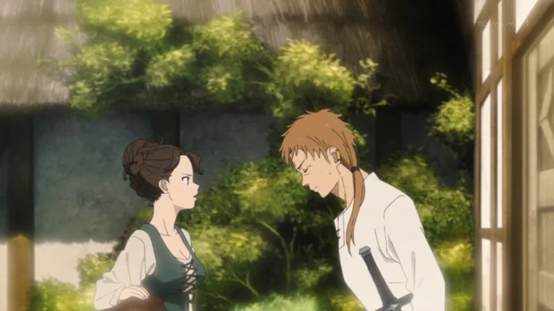 突然の雨にずぶぬれになり、帰宅するルディとシルフ。リーリャに「お湯の準備ができております」と言われたルディは、シルフを2階に案内する。