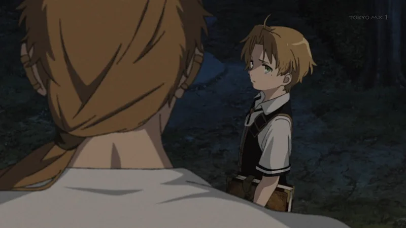 場面変わってパウロに諭されるルディ。今度のパウロは優しい。無理矢理女の子の服を脱がせた、ということになっている。会話の中で、名前がシルフではなくシルフィエットであることが分かるルディ。なおこの時点で、パウロはルディがシルフィエットを男だと勘違いしていたことを知らない。