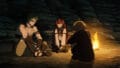 倒しまくった魔物のうち、コヨーテっぽい魔物の肉を食べている。憧れてたのよっ!と焼いた魔物の肉を喰らうエリス。ちなみにルディはミルワームみたいなものを恐る恐るかじっている。