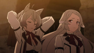 フィットア領消失時に転移してしまった皆はそれぞれ悲惨な運命をたどったわけで、リーリャとアイシャのそれも凄惨だ。これまで見てきたルディとエリス、パウロとノルンの苦境に続く描写は、その心細さが伝わってくる演出で胸を打つ。