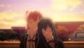 大人びた表情で下駄箱に寄り掛かる由比ヶ浜を見て言葉を失う八幡。八幡は原作では声をかけそびれ、由比ヶ浜は八幡のローファーが床に落ちた音でようやく振り返る。アニメ版では、由比ヶ浜は普通に八幡に気が付き、声をかける。アニメ版だけだと、凛とした由比ヶ浜に見とれているようにも受け取れる。案外、こちらが本心に近いのかもしれない。